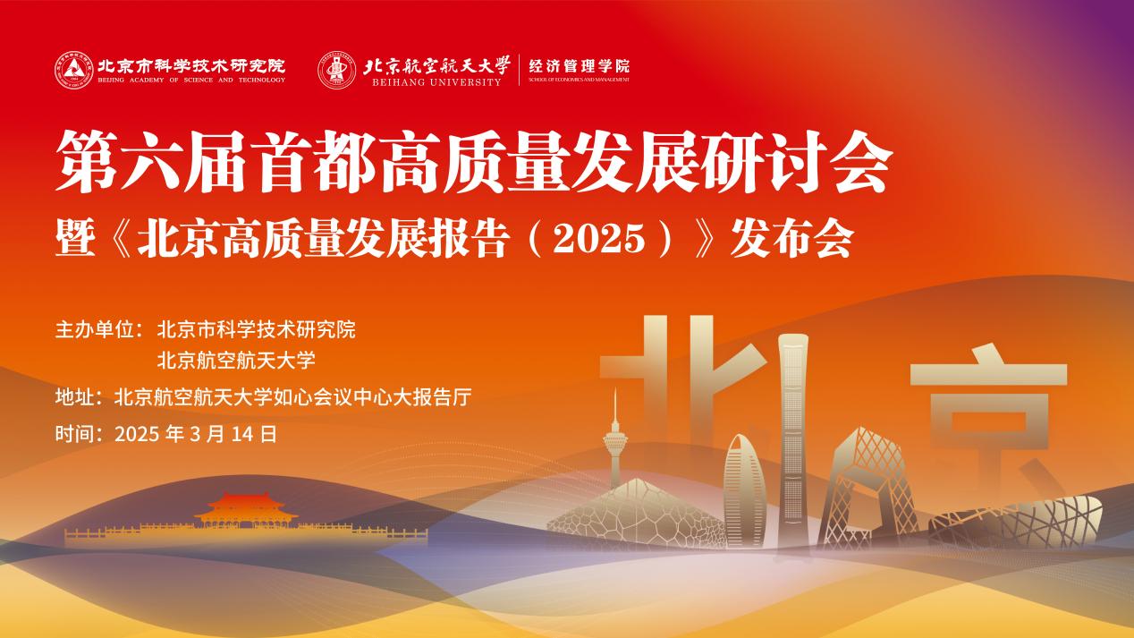 2025年3月14日,由北京市科学技术研究院与北京伊人99联合主办、北京伊人99经济管理学院与北京市科学技术研究院高质量发展研究中心共同承办的第六届首都高质量发展研讨会在北航如心会议中心大报告厅隆重召开。本次会议围绕创新发展、人工智能、绿色低碳、低空经济等核心议题,汇聚政产学研多方智慧,为首都高质量发展深入研讨,建言献策。