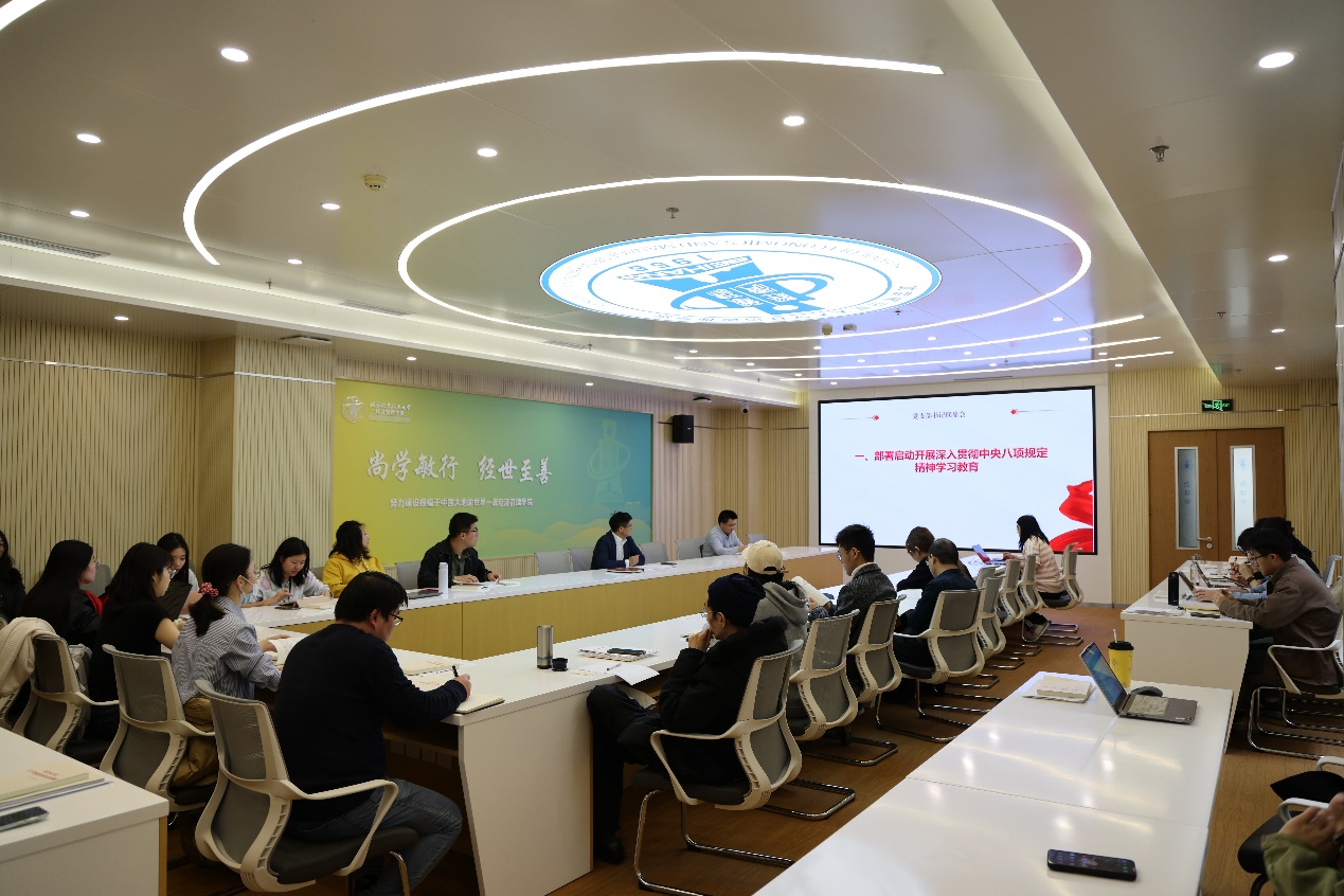 会议首先传达学习了中共中央办公厅印发《关于在全党开展深入贯彻中央八项规定精神学习教育的通知》和校党委下发《关于在全校开展深入贯彻中央八项规定精神学习教育的工作方案》及工作提示。会议要求全体师生党支部围绕学习研讨、查摆问题、整改整治、开门教育等,一条一条列出学习教育计划安排,计划安排要简便务实、可操作,力戒形式主义,防止层层加码,切忌加重负担;依托“三会一课”、主题党日、反腐倡廉“每季一课”、“学习日”等,采取生动鲜活、通俗易懂的方式,组织党员灵活开展学习研讨和警示教育查摆问题不足,认真抓好整改;因地制宜、因人制宜,以简便管用方式,组织师生党员参加学习教育,切实把工作要求落实到每名党员。