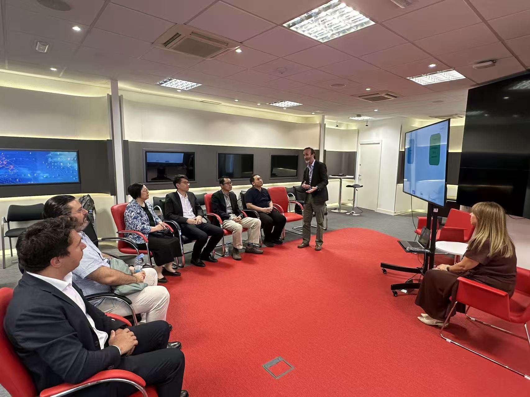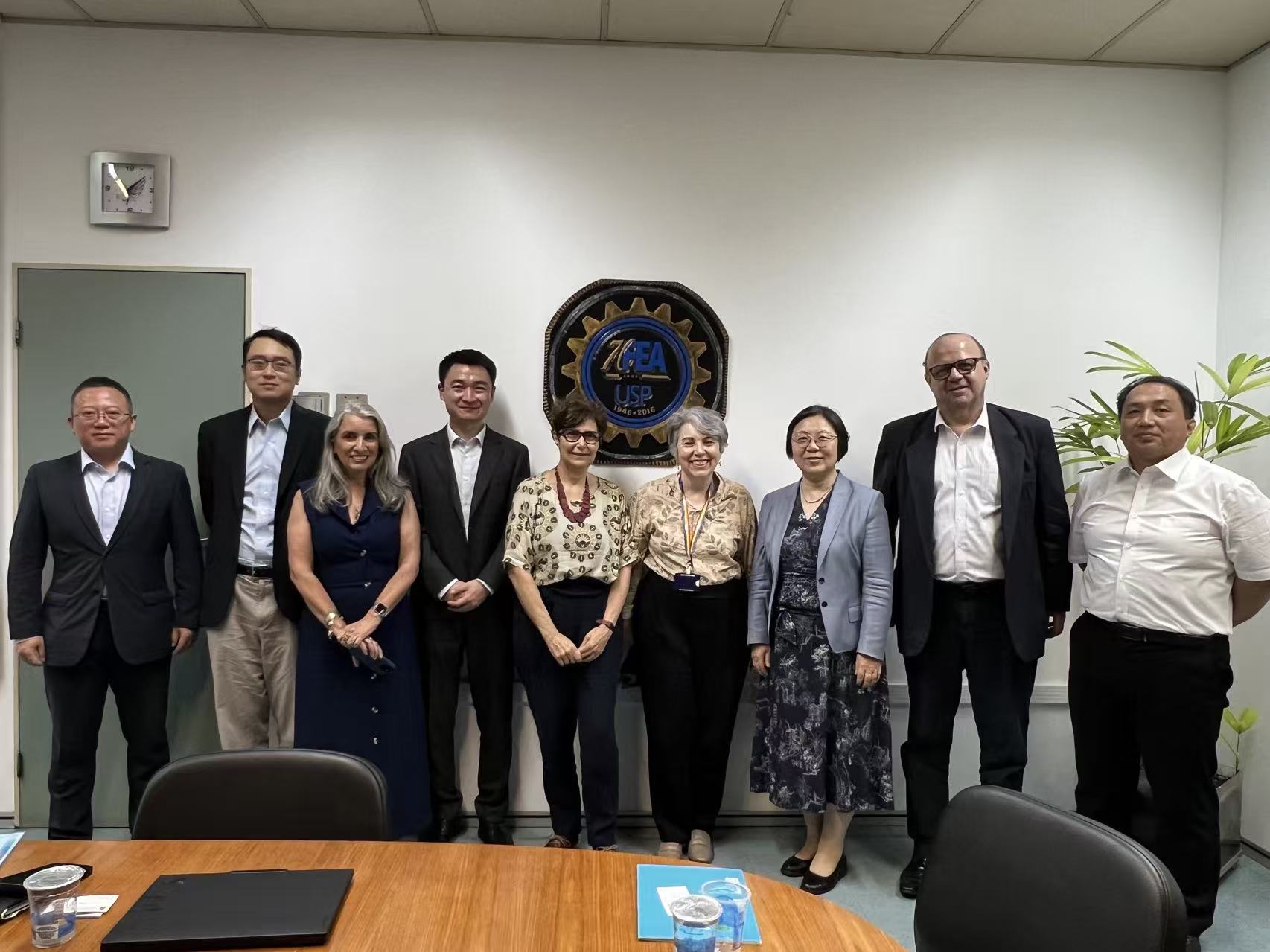在圣保罗大学(USP)访问期间,代表团访问了圣保罗大学经济和商学院,参观了学院的教学科研设施,圣保罗大学经济和商学院院长Maria Dolores Montoya Diaz、副院长Maria Sylvia Macchione Saes接待代表团并举办双边会谈。随后,代表团访问了圣保罗大学温室气体创新研究中心,与圣保罗大学温室气体创新研究中心副主任、温室气体项目组主任Emílio Carlos Nelli Silva,与圣保罗大学温室气体创新研究中心科研人员举办学术研讨会。衣博文老师代表教育部低碳治理与政策智能实验室介绍了我院气候变化、能源环境、低碳治理领域的科研方向和成果。圣保罗大学温室气体创新研究中心人力资源与沟通主管、圣保罗大学中国中心联络人也陪同参观了圣保罗大学的教学与科研设施。