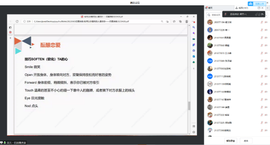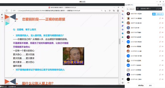 为引导同学们树立正确的婚恋观,学会理性处理恋爱当中的矛盾与问题。4月20日晚,经济管理学院邀请国家二级心理咨询师、北航积极心理咨询中心兼职咨询师、经济管理学院专属心理咨询师梁天一老师开展“八喜”心理健康系列讲座“如何让你喜欢的人喜欢你”。全院各年级一百余名同学参与此次线上讲座。