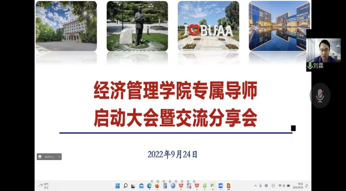 2022年9月24日上午,经济管理学院召开专属导师启动大会暨交流分享会,经管学院院长范英、学院党委书记郑海涛、党委副书记高超、专职辅导员白雪以及82位专属导师参会。会议介绍了学校的专属导师制度,并就如何加强学院专属导师制度建设,为学生提供更好的专属导师体验进行分享、交流与探索。