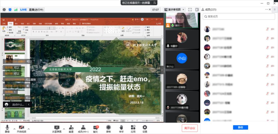 针对当前严峻的疫情形势和同学们的实际需求,5月19日下午,经济管理学院邀请国家二级心理咨询师、北航积极心理咨询中心兼职咨询师、经济管理学院专职心理咨询师梁天一老师组织了题为“疫情之下,赶走EMO,提振能量状态”的心理健康讲座,全校300余名同学参加。讲座由经济管理学院团委书记朱鹏宇主持。