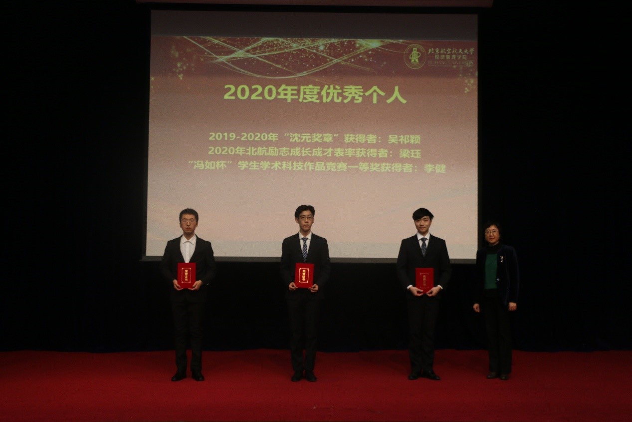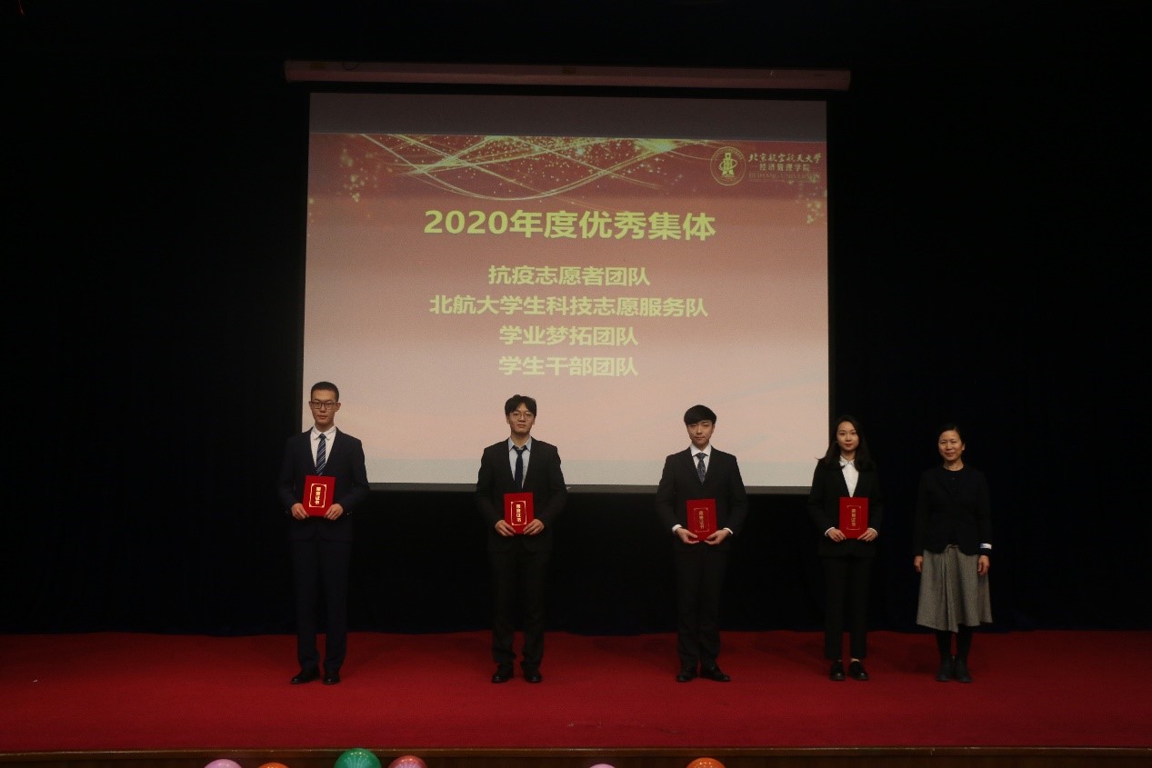 为表彰我院本科生在上一年度做出的贡献,充分发挥榜样带头作用,激励经管学子积极参加科研、志愿活动,我院对优秀集体、优秀个人颁发荣誉证书。本科教务朱伟为2020年度优秀集体—抗疫志愿者团队、北航大学生科技志愿服务队、学业梦拓团队、学生干部团队颁奖。