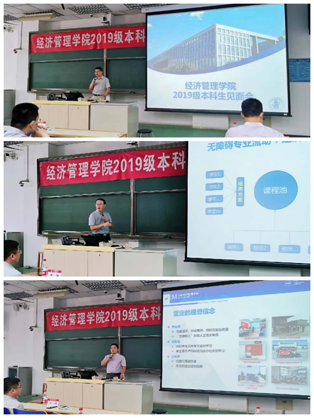 范英院长代表经济管理学院全体师生对2019级本科生同学表示了热烈的欢迎,同时表达了对同学们的慰问。随后,范院长为同学们介绍经济管理学院在理工科背景下的特色和优势,以及近年来取得的成就。随后,范院长详细讲解学院无障碍专业流动政策和优越性,强调基础知识与学科交叉的重要性。范院长指出,学院将持续关注同学们的学习和生活,为同学们搭建个性化成长平台,同学们的学习方式也要由被动接受转变为主动享受。最后,范院长表达了对同学们的期许,希望同学们在学习上下真功夫,一步一个脚印,积极参与科研竞赛和国际交流,开拓视野,不断提升创新能力。
