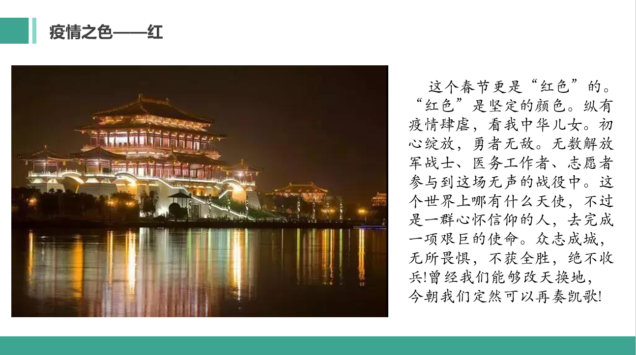 本次“四个一”分享活动,同学们的介绍几乎覆盖了全国的每一个省份,让同学们能在线上就进行了一次虚拟的旅行,能看到各个地方不同的生活,即增长了见识,又陶冶了情操,为我们日常在家枯燥的学习增添了一份乐趣,发现了生活中的美,希望大家都能在这段时间做好学习和娱乐间的平衡,保护好自己也是为疫情防控贡献自己的力量。