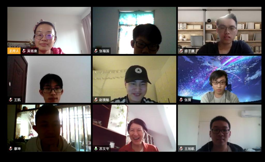 在由主持人和苏文平老师简单地介绍活动目的后,活动直接开始。每个同学都依次介绍自己的家乡。比如王冠明珠介绍了自己的家乡海南省五指山市,她分享了名人海瑞,景点神玉岛,美食海南粉,和她疫情期间参加社区防控的志愿工作经历。肖蓓琳介绍了她的家乡山东青岛,名人老舍,景点极地海洋世界,美食青岛梭子蟹,以及个人感悟:在紧张的生活中要学会停下来放松,欣赏生活的美好。哈蕊介绍她的家乡甘肃,名人李白,景点鸣沙山月牙泉,美食酿皮子,并表达了对疫情期间一线的工作人员的感激。
