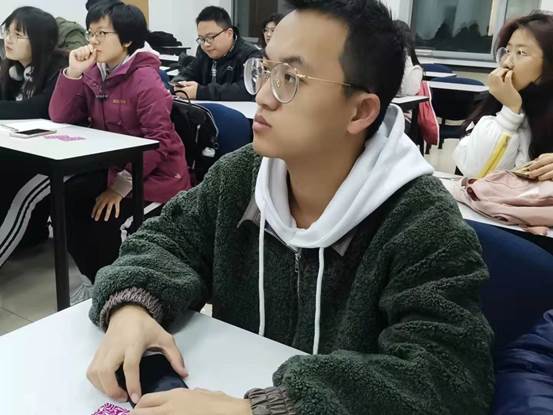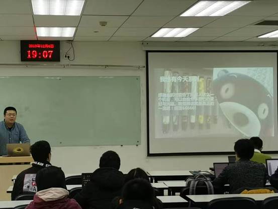 12月4日,在A949,经济管理学院2017级本科生张天翊为同学们主讲博雅课《从钢笔艺术看文化寄托》。