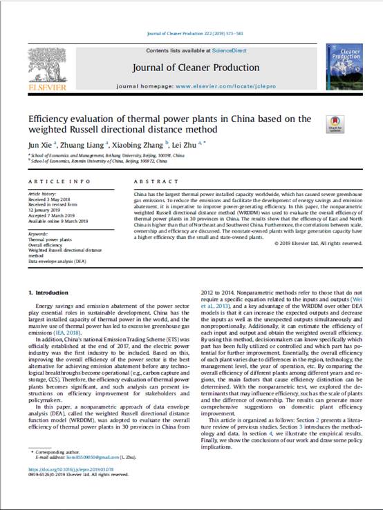 2019年,研究成果在《Journalof Cleaner Production》(SCI检索Q1区,五年影响因子7.051)发表,谢俊和梁壮分列第一、第二作者.