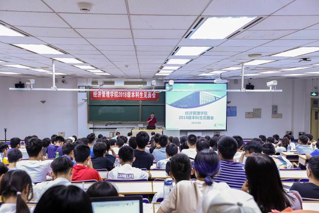 9月1日晚,经济管理学院2018级本科生见面会在学院路校区主M202举行。经济管理学院院长范英、副院长秦中峰、副院长吴俊杰,学生工作负责人单伟,系主任方虹、系主任马杰,本科教学秘书朱伟,各小班班主任,经济管理学院辅导员以及1808大班全体同学参加了见面会。见面会由经济管理学院学生工作负责人单伟主持。