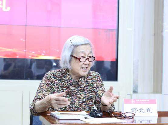 应同学们的邀请,舒允宜老师为同学们讲述了她和成院长近60年共同生活的温情回忆,这其中既有共同面对困难的风雨同舟,也有两地分居奉献祖国的无私奉献,还有相互扶持的深挚情感,也不乏生活中点滴快乐的小事。他们共同见证了中华民族从“站起来”到“富起来”并阔步迈向“强起来”的伟大征程,并分别在国家建设的不同领域努力奋斗,贡献了自己毕生的力量。舒老师在回顾成院长人生历程的过程中,凝练了他的两种精神,一是爱国精神,讲的是他矢志不渝的爱国心、报国志,二是学习精神,成院长毕生坚持每天学习,才成为了学贯中西、知识渊博的经济学家、管理学家。她分享了成院长的《自立诗》和自己为了纪念他而作的《长相忆》,还拿出了珍藏六十余年的报纸,分享成院长在其中发表的《我要在5年后达到副博士水平》,鼓励同学们继承发扬爱国、勤学的精神,不改初心,报效国家!