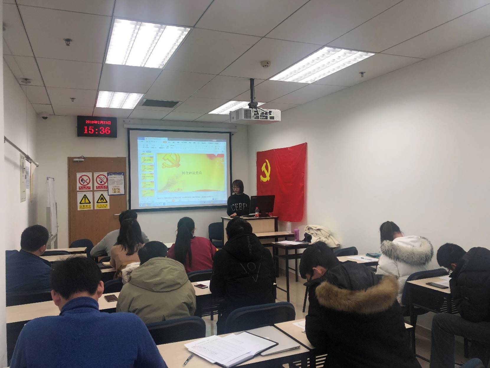 2019年2月23日14:30,本科大四党支部在新主楼A1039召开了寒假社会实践分享会议并进行了民主评议党员工作,会议由1508第二党支部书记马倩茹主持。参加本次会议的有学院专职辅导员朱鹏宇、白雪,学校督导老师,以及本科大四党支部成员。