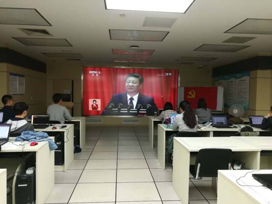 首先,习近平总书记代表十八届中央委员会向中国共产党第十九次全国代表大会进行报告,支部全体党员同志认真聆听了习近平总书记对过去五年的工作与变革的回顾与总结。