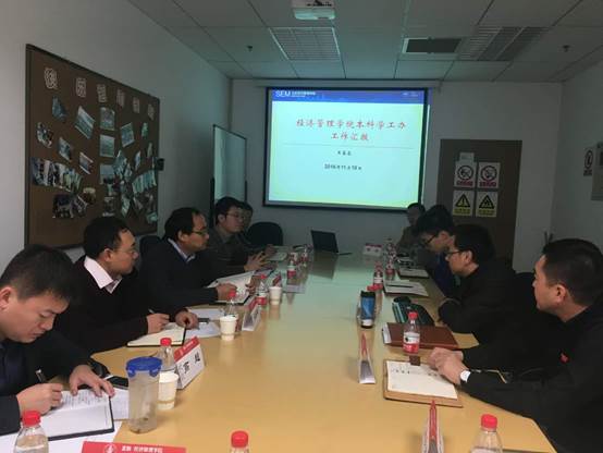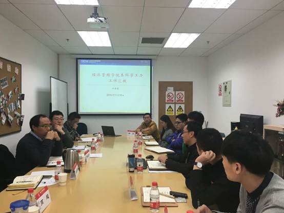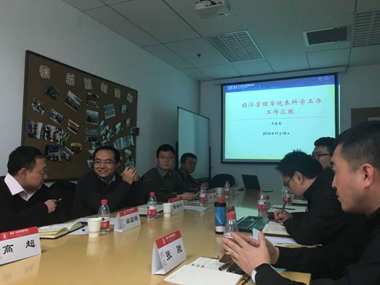 随后,在新主楼A941会议室听取经济管理学院本科学工办工作汇报。汇报开始前,经济管理学院党委书记刘志新教授来到会议室对到来嘉宾表示热烈欢迎,并希望调研组指出本科生办公室人员工作的不足之处,以提高辅导员队伍的建设。