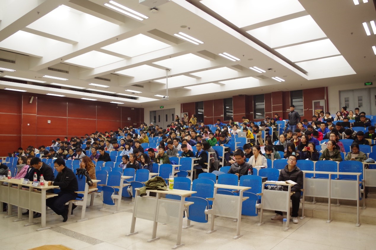 2016年11月4日晚18:30,北航经济管理学院在沙河校区教0-002成功举办本学年第三次高端论坛和北航博雅课堂,主讲人是高级工艺美术师赵樯老师和永银文化公司董事长陈永先生,主题为《创意背后的故事》。经管学院沙河校区专职辅导员贾子超老师,1508大班辅导员王晨、王文涛,1608大班辅导员张羽驰、余阳杰以及全校300多名同学参加了此次论坛。