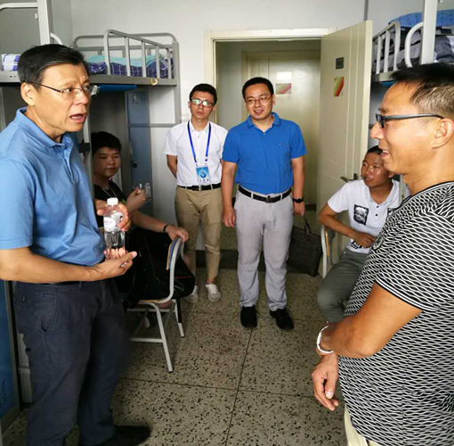 随后,院领导在辅导员的陪同下走访了新生宿舍,与2016级学生及家长亲切交流,了解新生的家庭状况以及报到情况。同时,梦拓和志愿者们全程陪同新生搬进学生公寓,新老生之间展开了热烈的互动。