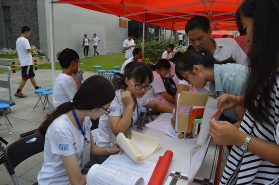 早上六点,梦拓和志愿者们在辅导员的带领下前往”世纪之声”广场进行场地布置,迎新工作于七点半准时开始。为尽可能给新生提供便利,报到处的志愿者们进行一站式作业,把办理入学手续的时间缩短到仅仅一分钟。今年经管学院采取了“游戏式迎新”,其目的是让新生尽早熟悉校园环境:利用游戏中小而有挑战性的目标来激发新生探索校园的热情。