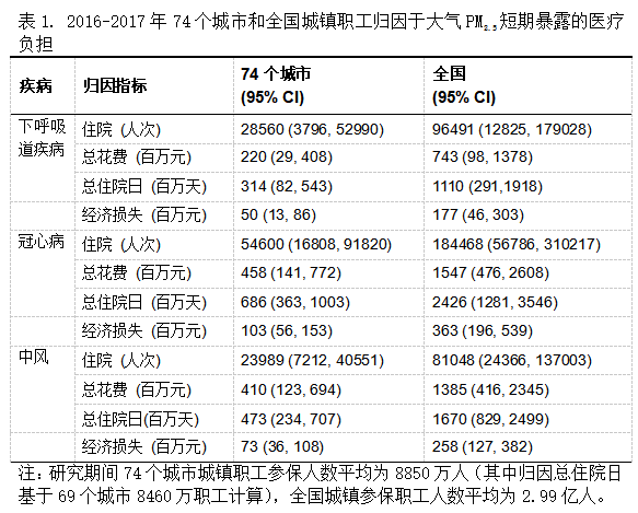 该研究发现大气PM2.5短期暴露可以显著增加呼吸系统和心脑血管系统住院人次和相关医疗花费。上述结果显示近年来我国政府大力控制空气污染排放、持续改善空气质量,可能带来显著人群健康效益,为个人和社会节约可观的医疗支出,并减少因劳动时间损失而导致的相关经济损失。在未来迈入老龄化社会进程中,医疗支出不断增加的情况下,积极推动空气污染治理、改善人居环境,不仅能够提高公众健康水平,也可以减轻家庭和社会的医疗负担。