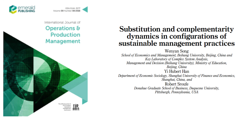 2022年7月,我院宋文燕教授及其合作者的最新研究成果“Substitution and complementarity dynamics in configurations of sustainable management practices”在运营管理权威期刊International Journal of Operations & Production Management(IJOPM)发表。合作者是上海财经大学副教授韩亦以及Duquesne University教授Robert Sroufe。IJOPM期刊为ABS列表4星期刊(ABS 4),2021年影响因子9.360。