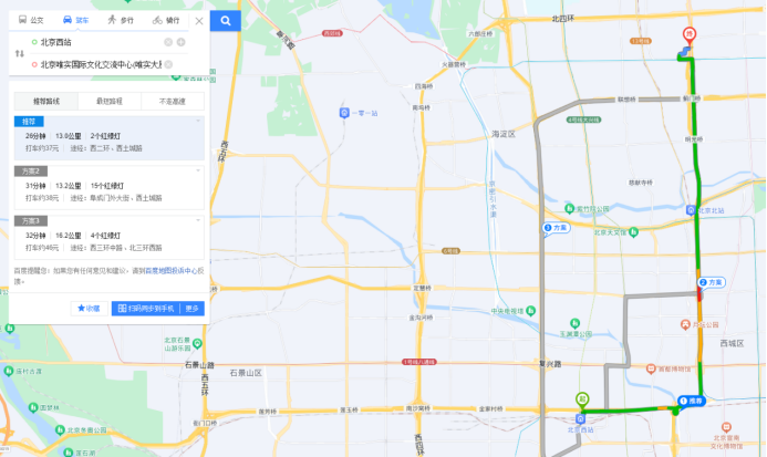 (1)地铁:地铁13号线—地铁10号线内环—西土城站。预计40分钟,费用约3元。