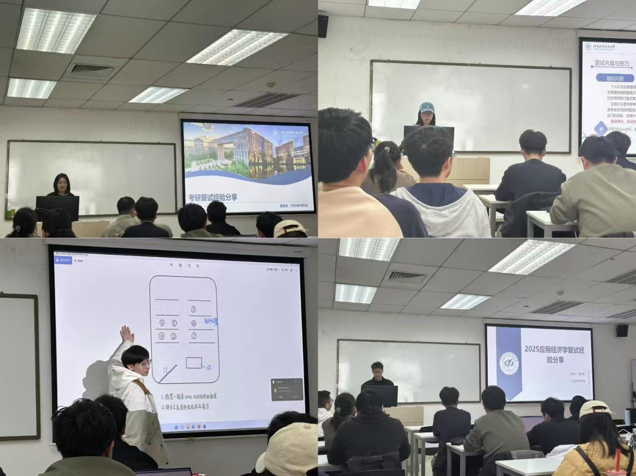 新学期伊始,为助力考研学子调整学习状态,形成更科学有效的学习规划,经济管理学院“尚学”学业支持与发展中心联合生涯服务中心,于2025年3月5日下午在学院路校区新主楼A1028教室组织了一场考研复试经验分享会。此次分享会特邀曹方煜、邢文超、陈佳怡、姜泽凯、张慜五位优秀的学长学姐,聚焦复试核心环节开展经验分享,100余人参加本次分享会。