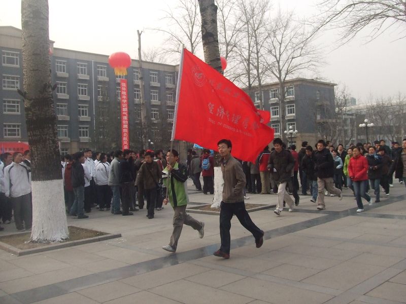 2007年12月9日,在校团委的组织下,经济管理学院3608大班的全体同学积极响应学校号召,在图书馆广场参加了一二.九长跑活动。同学们都接受了一次深刻的爱国主义教育,更加珍惜来之不易的幸福生活。