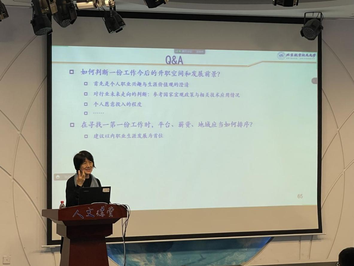 党的二十大报告提出,要实施就业优先战略,强化就业优先政策。为深入贯彻落实党的二十大精神,强化职业规划教育,帮助学生运用科学的方法,采取有效的行动,树立未来的奋斗目标,10月26日下午,《研究生职业生涯规划》讲座于北航人文讲堂成功举办。讲座邀请到了北航经济管理学院领导力与组织管理系教授苏文平老师主讲,经济管理学院100余名研究生新生以线上线下相结合的方式聆听了此次讲座。