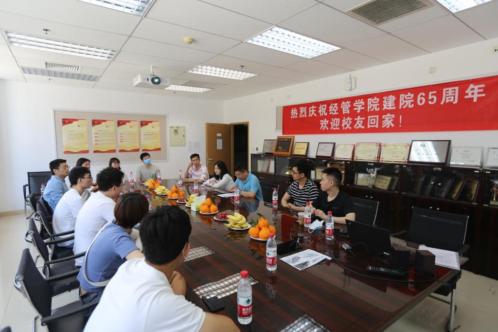 经管学院研究生指导主任单伟首先代表经管学院全体师生向校友们的到来表示热烈欢迎。他表示,今年是经管学院成立六十五周年,作为院庆系列活动之一,欢迎校友们返校座谈交流。校友是母校的重要资源,学院会更加重视校友工作。希望校友们与母校共成长,期待在未来与母校加强产学研等方面的合作。