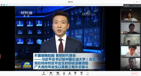 2020年7月11日上午十点,经济管理学院工业工程ZY2班在腾讯会议(会议号:257 214 775)召开班级学习会,集中学习习近平总书记给中国石油大学(北京)克拉玛依校区毕业生的回信,全体班级成员参加会议,班长佘亚倩主持会议。