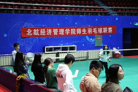 2019年北航经济管理学院师生羽毛球友谊赛于4月8日晚在北航体育馆主馆正式拉开帷幕。此次羽毛球友谊赛得到了广大研究生师生的热情响应,我院单伟老师、衣萌老师、林耀虎老师、周宁老师、田琼老师等与管院硕博研究生共同参与其中。在我院老师和同学的共同努力下,友谊赛取得了圆满成功。本次友谊赛不仅提高了师生身体素质,增进了师生情谊,还展现了学院老师与研究生的运动风采。