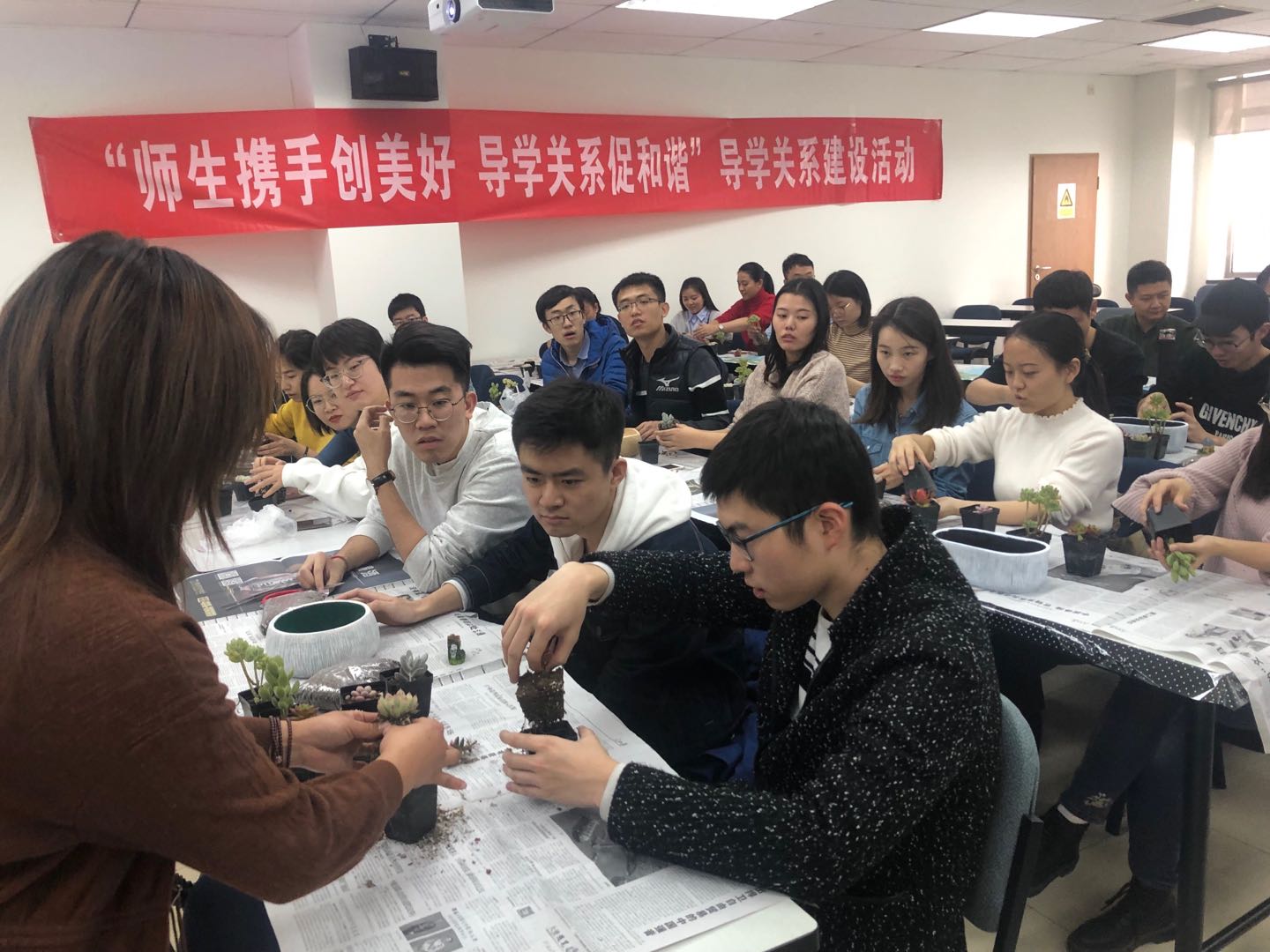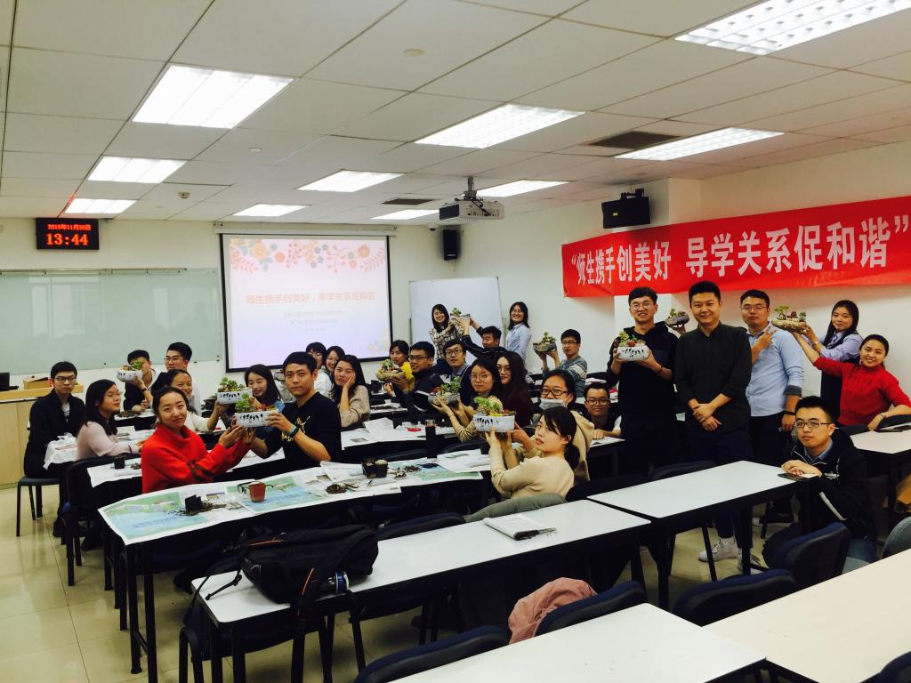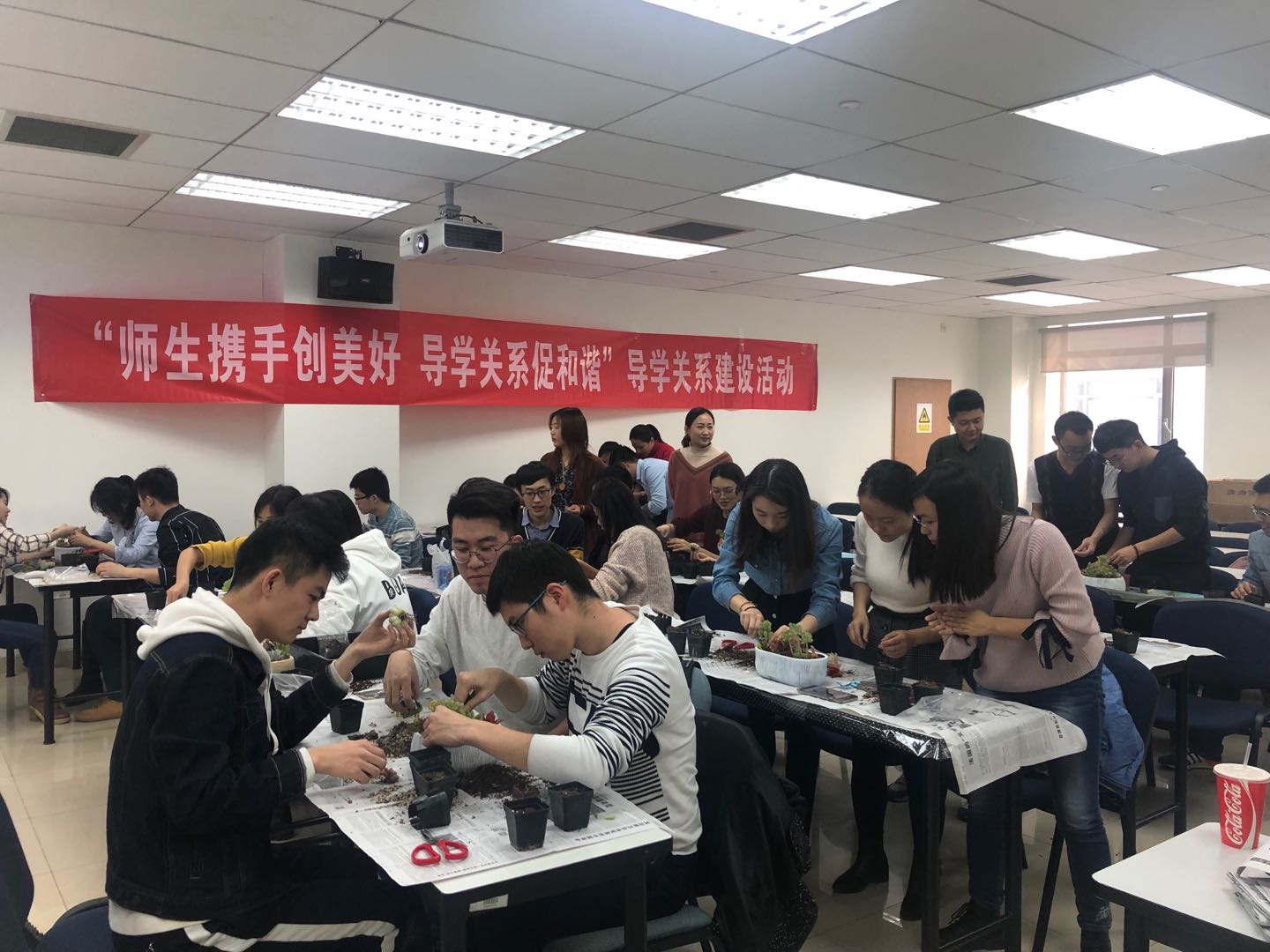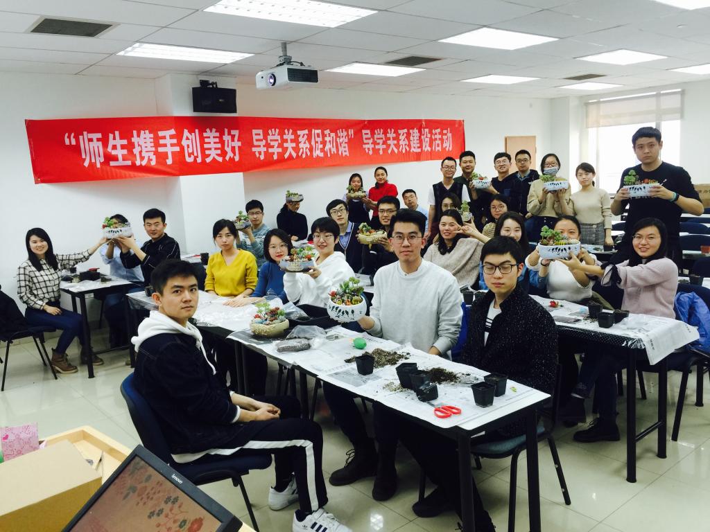 此次活动共有35名学生报名参加。同学们按照同门进行组队,合作完成DIY多肉植物赠送给敬爱的导师,同时还可以写上自己对导师的祝福,从而表达对导师的情感,增进导师与同学们的亲密关系。