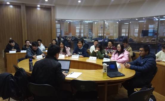 1月5日下午4:30,经济管理学院党委副书记王喜忠在北航沙河校区雄鹰领飞学生工作中心大会议室与1608大班学生代表展开座谈。2016级辅导员张羽驰陪同出席本次座谈会,17名学生代表参加了本次会议。