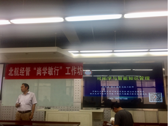 2017年6月26日上午,由经济管理学院“尚学敏行”工作坊主办的系列学术讲座——《可拓学与智能知识管理》于新主楼A618成功举办。特邀请到浙江大学宁波理工学院计算机与数据工程学院副院长李兴森教授为学生们做相关领域的学术报告,出席活动的领导老师还有经济管理学院副院长张人千教授,讲座由郑海涛教授主持。