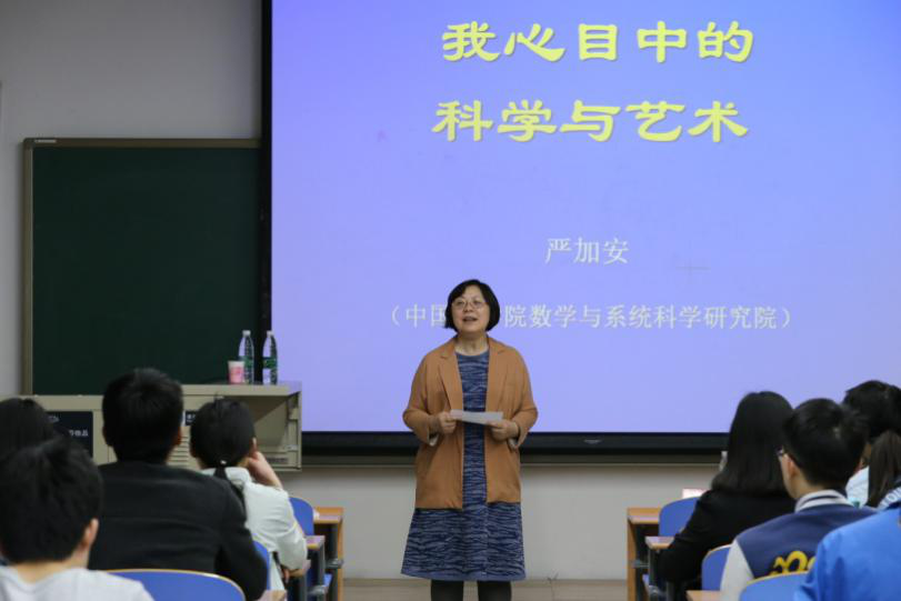 但这次讲座严加安院士没有给大家讲高深的数学,而是站在更高的思想角度讲解科学与艺术的关系。他先通过展示绘画、诗歌、书法等艺术与科学理论的互通之处,解读了科学和艺术的“大道至简、大美天成”,并阐明艺术教育可以提高人的素养。然后引经据典,解释了科学与艺术之间的共性和交融。更进一步说,“科学”与“诗歌”有很多细致的共同特性,如科学研究与诗歌创作都是对自然的深入研究;数学和诗歌都追求和谐与简洁;数学中的“对偶”与诗歌中的“对仗”异曲同工;科学研究和诗歌创作都需要直觉和想象等,这些想法都被他写进了著作《数斋随想》中。最后,严院士阐述了他对大学教育的一些思考和建议。他认为,知识积累和想象力是决定创新的两个至关重要的因素,并提出,学校的目标应该是培养能独立思考和解决实际问题的人。他的观点在学校当前关于人才培养大讨论的背景下,显得格外有意义。
