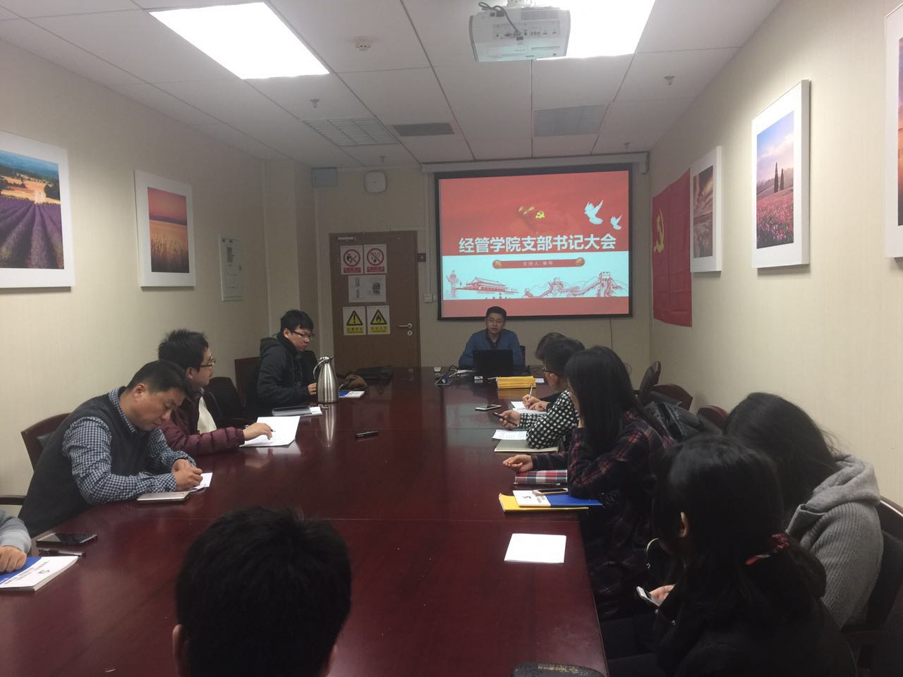 为进一步推进经管学院研究生党支部“两学一做”学习教育的开展,确保广大研究生党员将“两学一做”学习教育落到实处,2016年12月10日下午,经济管理学院研究生指导主任单伟副教授在新主楼A939会议室主持召开了研究生党支部书记大会。党务辅导员及各研究生党支部书记参加了此次会议。