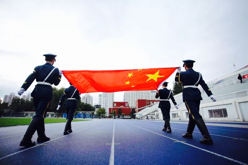 9时许,方阵进场完毕。升国旗、奏唱国歌。