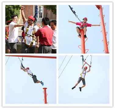 19日是拓展训练课程的核心阶段。在“高空单杠”挑战中,八米高台跳跃对学员心理构成巨大挑战。尽管团队中恐高的学员居多,但他们心中秉承坚定且不服输的信念,勇敢地纵深一跃,用坚定的力量抓住了“希望”的单杠,最终以全局皆胜的战果为此次高难度训练划上了完满的句号。下午,学员们沉浸在“鳄鱼潭”激烈的角逐中,两队双方都认识到共赢是唯一的出路,并以此为出发点制定各自的谈判技巧和谈判策略。最终,两队均发出“竞争对手永远不是敌人,感谢对方如此大度”的感慨。拓展训练中很多项目都是需要团队配合完成共同目标,比如“求生”环节,它要求学员们在规定时间内不依靠任何求生工具完成逃生任务,学员们迅速提出求生方案,有条不紊的用身体搭建起了一座坚固团结的“人墙”,最终以用时25分钟的好成绩顺利完成任务,全员成功脱险,学员们在此次活动中充分感受到了团队的力量。