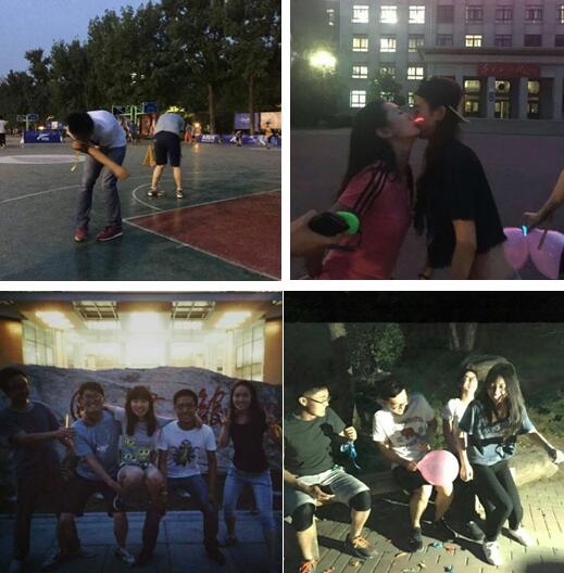 本次活动主题性强,范围广,趣味性多。每组队伍均可获得彩带、荧光涂料、荧光发饰及荧光环进行本队的主题装饰,五颜六色的荧光与每个人脸上灿烂的青春笑容交相辉映;活动起点设在操场,所有的队伍一同从起跑线出发,绕操场跑一圈后,依次跑到校园内的五个站点进行闯关。五个站点分别设在篮球场、新主楼大台阶前、主楼前、图书馆前及绿园。每个关卡代表一种颜色,队伍通过游戏关卡可获得相应颜色的荧光棒一枚。集齐五种颜色的荧光棒,以最快的速度跑到终点(唯实园)即为获胜;每个站点的游戏设置同样充满趣味与创意:旋转投篮、对踢毽子、嘴传荧光棒、叠罗汉及坐爆气球,每个游戏都需要团队成员的紧密配合,意在提升团队的凝聚力以及同学们之间的友谊。活动中,每个队伍团结一致,积极配合,努力攻克一个个关卡,并不抛弃不放弃,一同冲向终点。夜幕降临的校园,是大家荧动的脚步,欢乐的笑语。