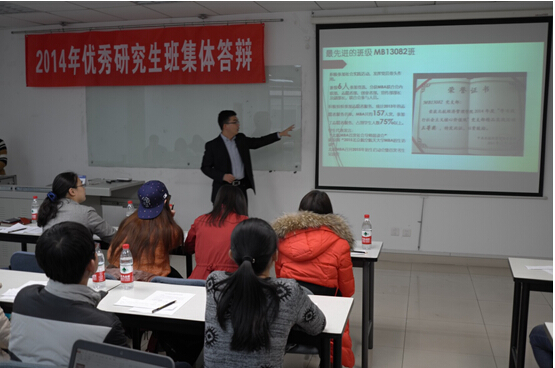 为贯彻党的教育方针,促进我校校风、学风建设,增强广大研究生班级文化氛围和凝聚力,我校开展了2014年优秀研究生班集体评选活动。经济管理学院负责承办第三小组(经济管理学院、人文社会科学学院、外国语学院、法学院、新媒体艺术与设计学院、思想政治理论学院)的初选工作。2014年12月22日下午14:00,第三组答辩在A928圆满举行。