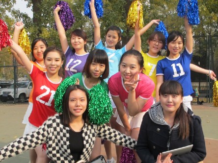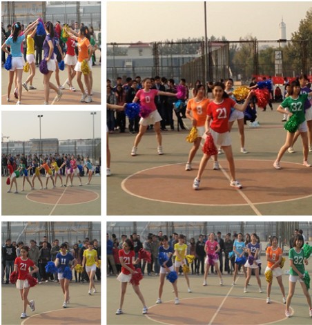 2013年11月8日中午,篮球场热闹非常。因为这里不仅有激烈的篮球比赛,更有活力无限的啦啦队比赛。