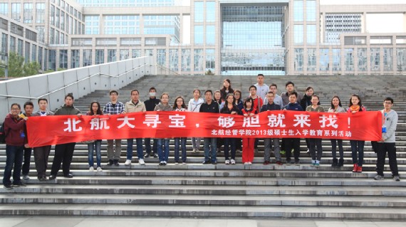 金秋十月,入学已有些时日的2013级硕士同学们是否已经褪去了对彼此对校园的陌生呢?2013年10月19日上午,迎着凉爽的秋风,一切生疏都在“北航大寻宝、够胆就来找”活动的激烈角逐中被团结和快乐所替代!本次由经管学院研究生工作办公室主办、SY13082班和经管分研会文体部承办的首届“北航大寻宝”活动,作为2013级硕士生入学教育系列活动之一,旨在帮助经管学院新生更好地熟悉北航校园,丰富大家研究生阶段的课余生活,促进各班同学之间的交流。
