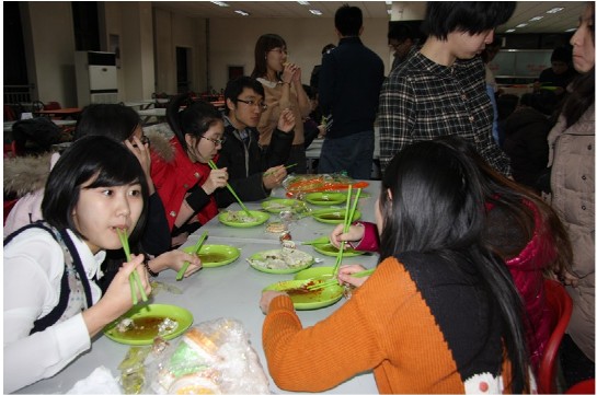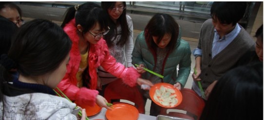 12月21日经济管理学院2011级、2012级近70名同学在合一楼二层南举行冬至包饺子活动,SY12081和SY12082班共同承办本次活动,2011级硕士辅导员张晓明、2012级硕士辅导员王腾飞参加了本次活动。