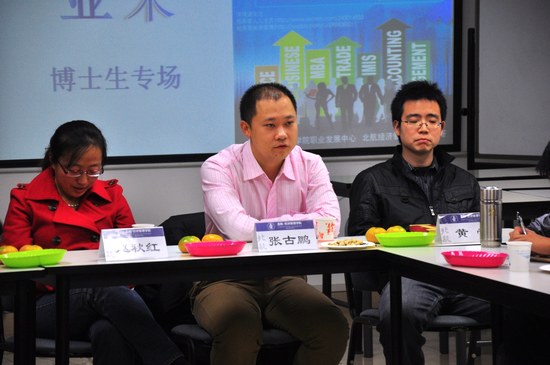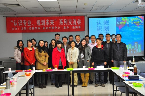 10月31日晚7点,由北航经管学院学生职业发展中心主办、北航经管学院经英荟承办的“认识专业、规划未来”系列交流会—博士生专场在新主楼1028成功举办。到场的嘉宾有北京伊人99经济管理学院陈向东教授、赵秋红教授,优秀校友张古鹏、邓婉君、王科、谢飞、黄帝以及2012级博士生。