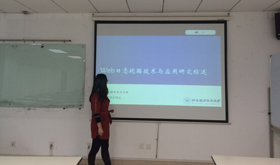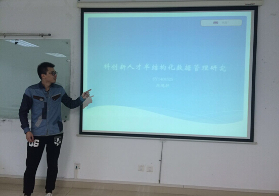 廖瑶、周鸿轩、宁曼同学分别就自己的学术论文——《关于地铁出行的拥挤敏感性分析》、《科技创新人才半结构化数据管理研究》以及《Web 日志挖掘技术与应用研究综述》等与在座的老师和同学们做了分享,论文作者的精彩讲解赢得了在场同学的热烈掌声。