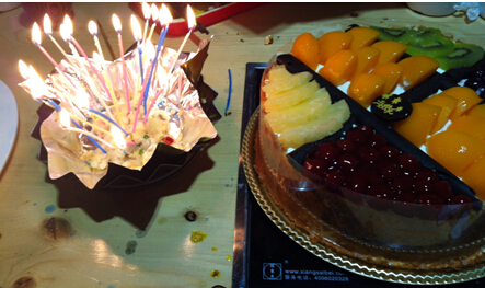 11月22日,SY13082班级生日会如期而至。冬日里,树上的叶子散落一地,我们伴着落叶的沙沙声,从新主楼走到了音乐烤吧。尽享美食的同时,也没有忘记对自己的小伙伴们道一句祝福,此刻学习的压力、生活中的不愉快被舒缓了不少。饭后我们一起唱生日歌,一起吹蜡烛,一起品尝精心准备的生日蛋糕。同时做了一些如今最时髦的游戏UNO,这不仅活跃了现场气氛,也使大家兴致推向了一个高峰。在音乐烤吧里,我们伴着歌手天籁般的歌声,同学们的笑声,圆满的结束了此次活动。