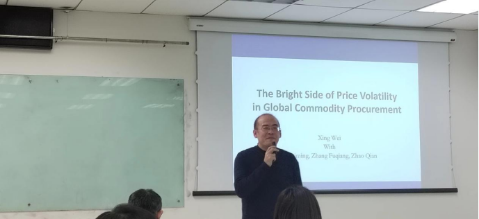 北京伊人99经管学院主办的“工程管理论坛”系列讲座2023年第20期(总第34期)于12月29日16:30在新主楼A1028线下举办。本期“工程管理论坛”主讲嘉宾为中国石油大学(华东)经济管理学院邢伟教授,刑教授的讲座主题为:The Bright Side of Price Volatility in Global Commodity Procurement。本次讲座由北航经济管理学院刘天亮教授主持,经管学院相关师生参加了会议。