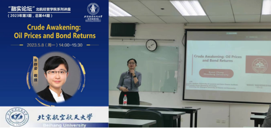 张教授在报告中分享了她最新的一项研究工作“Crude Awakening: Oil prices and Bond Returns”。油价中蕴含着丰富的信息,但因为噪音太大,油价变化无法直接预测资产的回报。同时,油价的变化会影响人们对通胀的预期,导致央行对此作出反应,进而影响国债收益率。基于这些观点,张教授团队选取了来自15个发达国家和5个新兴国家共20只国债并计算它们的债券收益率和超额收益率。在油价的选取上,考虑了从Bloomberg数据库获取的WTI原油和布伦特原油这两个油价序列,原油趋势价格定义为每日价格的30个月移动平均的月度变化,并使用偏最小二乘方法将原油趋势价格序列与1至12个月到期的现货价格和期货价格相结合,从而消除大量与未来债券风险溢价无关的噪音。研究发现,对于发达国家和新兴国家,样本内和样本外的回归结果都表明油价上涨与随后更高的债券回报相关,且基于原油趋势价格因子的预测改进了基于当前期限结构预测因子和宏观经济预测因子的预测。同时,研究还证明原油趋势价格主要受需求冲击而非供应冲击驱动,因此原油趋势增长往往预示着经济疲软和更高的债券回报率。张教授的研究具有重要的理论意义及实践价值。