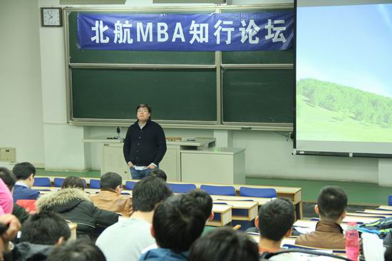 2015年3月14日晚,新学期首场MBA知行论坛在主M102教室热烈开讲。本次活动邀请到我航优秀校友、现任北京钱粮科技有限公司创始人兼首席执行官康睿先生,为同学们讲述创业这些年的那些事儿。