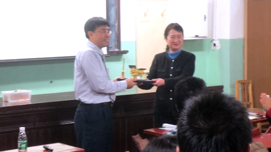讲座结束后,王惠文院长讲话并代表经济管理学院向张伟豪老师赠送“嫦娥三号”飞船模型。最后,在热烈的掌声中,本次经济管理学院高端论坛讲座圆满结束。