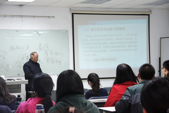 2014年10月13日,我院邀请到来自中国银河证券有限责任公司高级经济学家苑德军教授为我院学生作题为《中国金融业发展趋势与商业银行面对的挑战》的报告。我院李平教授担任主持,2014级研究生出席了本次讲座。讲座一开始,李教授对苑德军教授作了简要介绍——苑教授的研究方向主要为金融理论与政策、投资经济和项目分析,与此同时他也担任了中国社科院金融研究中心特邀研究员和中国农业大学金融与投资研究中心特邀研究员等。
