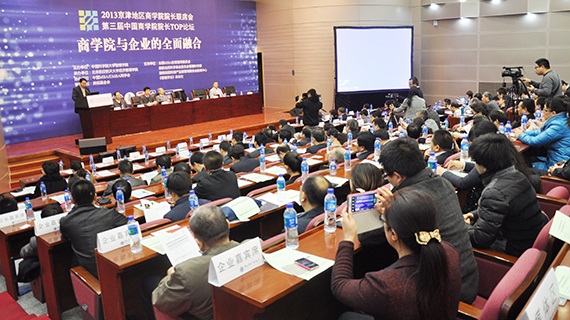 12月3日,由中国科学院大学管理学院主办、我校经济管理学院承办、中国MBA/EMBA同学会协办的“2013京津地区商学院院长联席会暨第三届中国商学院院长TOP论坛”在我校新主楼第一报告厅举办。论坛围绕“商学院与企业的全面融合”为主题,共同探讨商学院与企业的全面合作、高质量管理人才的培养、社会服务能力的提升等问题。来自京津地区40余所院校的商学院院长和近百名企业家270余人参加会议。论坛也得到了全国MBA教育指导委员会、国家自然科学基金委员会管理科学部、国务院国有资产监督管理委员会新闻中心、《管理评论》杂志社和美铝基金会的支持。